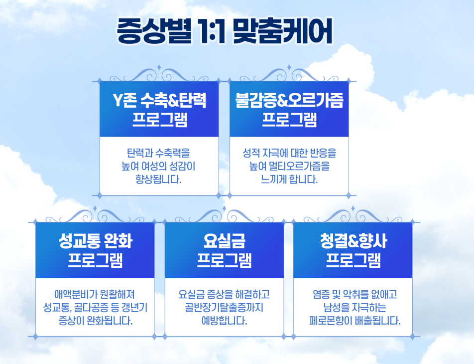 | 성기능 향상 | 질 조임 개선, 오르가즘 감각 증대, 질압 증가 |